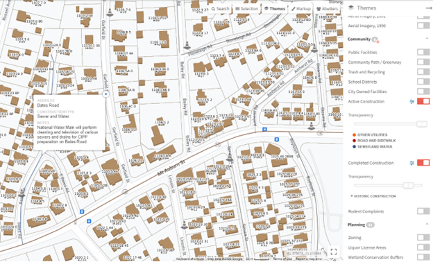 Check out a new theme that Watertown, MA has configured on their MapGeo site to be more transparent about their active construction around town. We recently worked with the City to develop a workflow to maintain their new theme on a weekly basis with up-to-date data. This MapGeo theme utilizes planned construction notifications, produced by the City’s Department of Public Works, to display an active visualization of all the construction work being performed around the City for that given week.